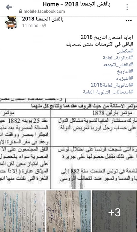 تداول امتحانى الفيزياء والتاريخ بالإجابات عبر "بالغش اتجمعنا" (صور)