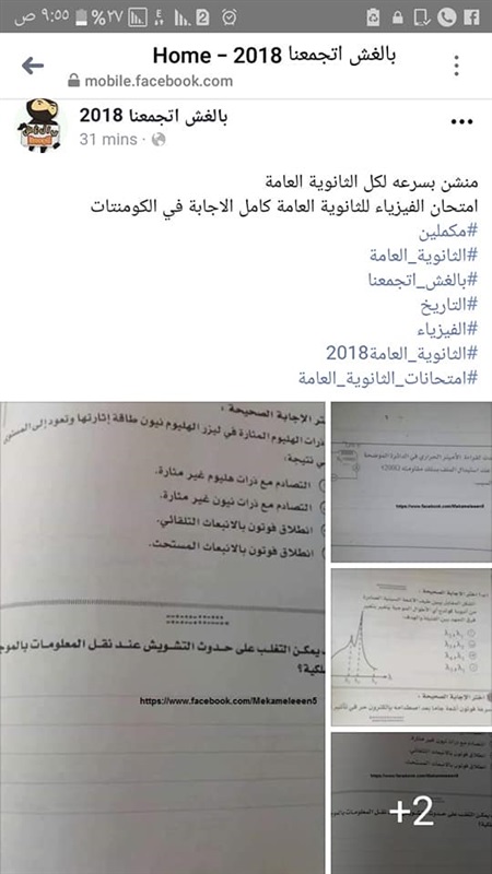 نجحت صفحة "بالغش اتجمعنا" في نشر امتحانى الفيزياء للشعبة العلمية، والتاريخ للشعبة الأدبية منذ قليل.