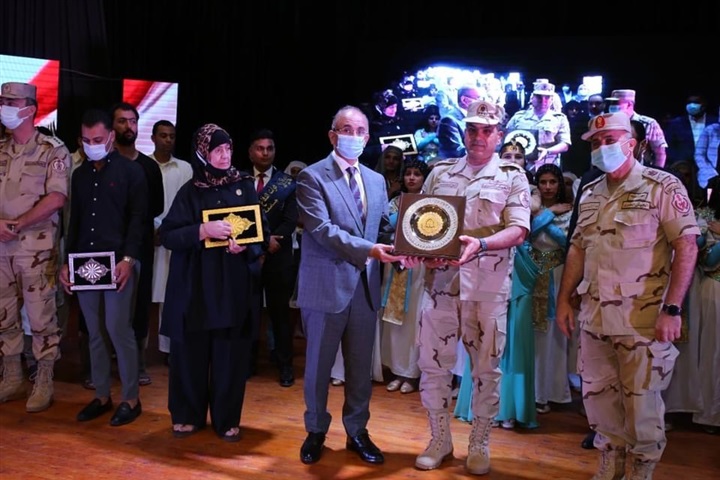 واختتمت الندوة بمراسم التكريم حيث كرم الدكتور عثمان شعلان رئيس جامعة الزقازيق واللواء عماد أحمد ذكي قائد قوات الدفاع الشعبي والعسكري، أسر شهداء العمليات العسكرية للقوات المسلحة والشرطة المصرية وهم الشهيد العميد أركان حرب هاني محمد محمد سليمان وتسلمت التكريم زوجته سكينة عبدالسلام سلامه، والشهيد العقيد محمد عيد عبدالسلام وتسلمت التكريم والدته عائشة عبدالغني محمد، والشهيد رقيب أول أحمد عبدالحكيم وتسلمت التكريم زوجته وردة السيد، والشهيد رقيب محمد وحيد عبدالمنعم وتسلم التكريم أخوه محمود وحيد عبدالمنعم.