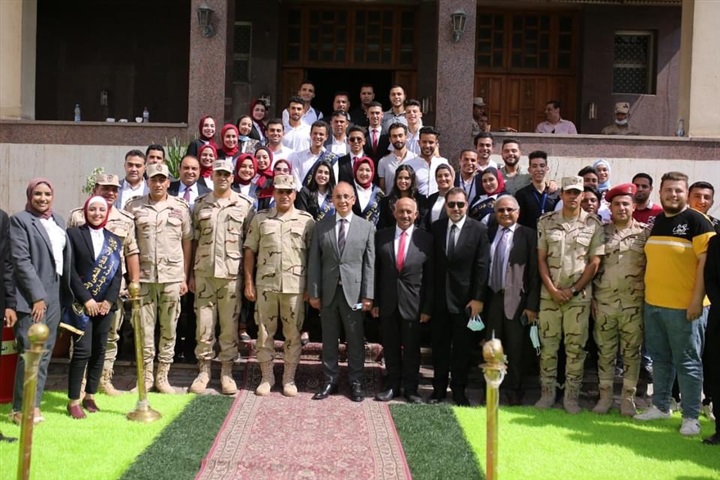 وتبادل الدكتور عثمان شعلان رئيس الجامعة واللواء أركان حرب عماد أحمد زكي درع الجامعة ودرع قوات الدفاع الشعبي والعسكري كما قدم الدكتور عثمان شعلان درع الجامعة للعميد أركان حرب ياسر محجوب قائد الفرقة السادسة المدرعة. ووقف جميع الحضور تحية للسلام الجمهوري لجمهورية مصر العربية.