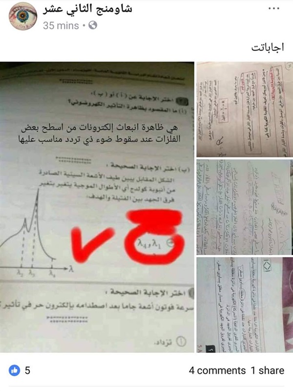 بعد نصف ساعة من بدأ امتحان مادتى الفيزياء والتاريخ الذى يؤديه طلاب الثانوية العامة اليوم، نشرت صفحة شاومينج الثامن عشر إجابات لعدد من الأسئلة التى جاءت بإمتحانى الفيزياء والتاريخ.
