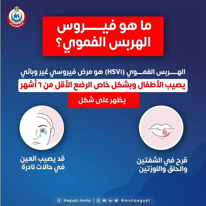 كشفت وزارة الصحة والسكان، عن مرض الهربس الفموي الذي يصيب الأطفال الصغار.