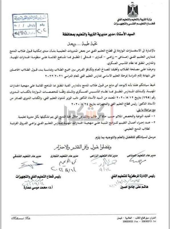 التعليمية، للرد على الاستفسارات الواردة إلي قطاع التعليم الفني من بعض المديريات