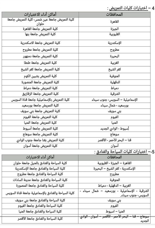 كما أعلنت عن أماكن اختبارات القدرات لكليات التمريض وجاءت كما موضح بالصورة
