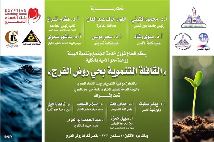 الأمية، بالتعاون مع رئاسة محافظة القاهرة، ورئاسة حي روض الفرج، وكلية التمريض، والهيئة