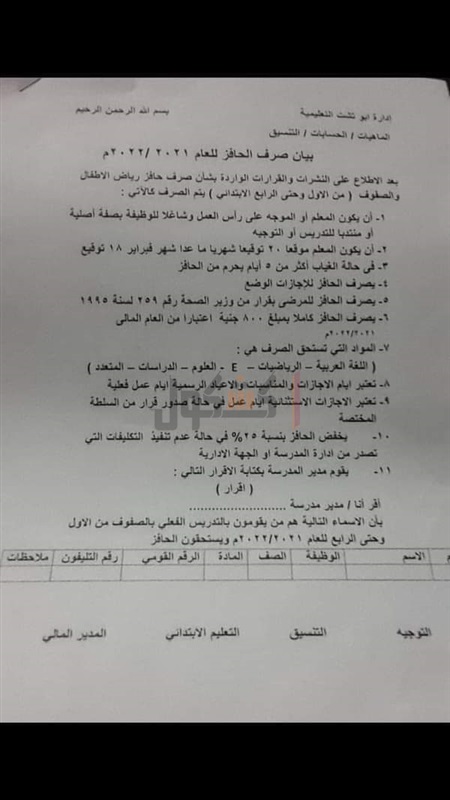 وقرارات صرف حافز رياض الأطفال والصفوف