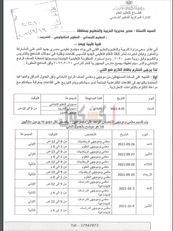 على التنمية المهنية، في الصف الرابع الابتدائى، لافتة إلى أنه يكلف مدير التعليم الابتدائى