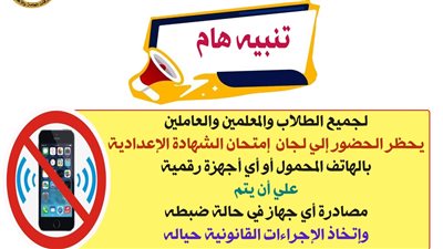 أعلنت مديرية التربية والتعليم بالقاهرة، تطبيق حظر شامل وصارم على استخدام الهواتف المحمولة داخل لجان امتحانات الشهادة الإعدادية الترم 2026.